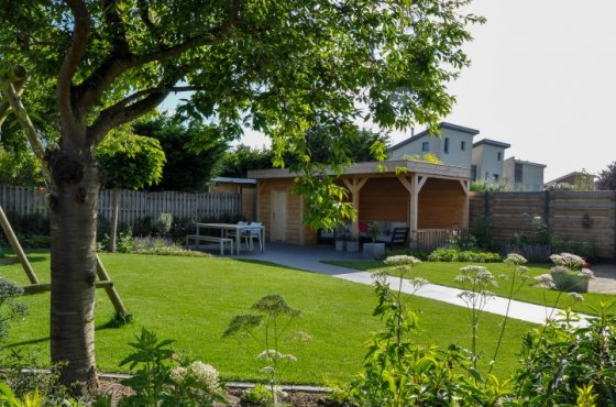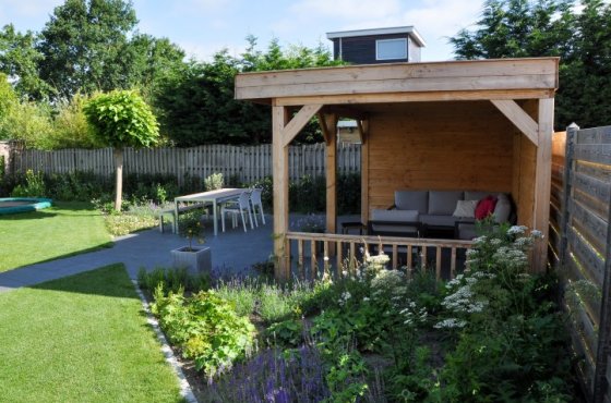 Kapschuur van douglus hout waar men heerlijk kan genieten van de avondzon